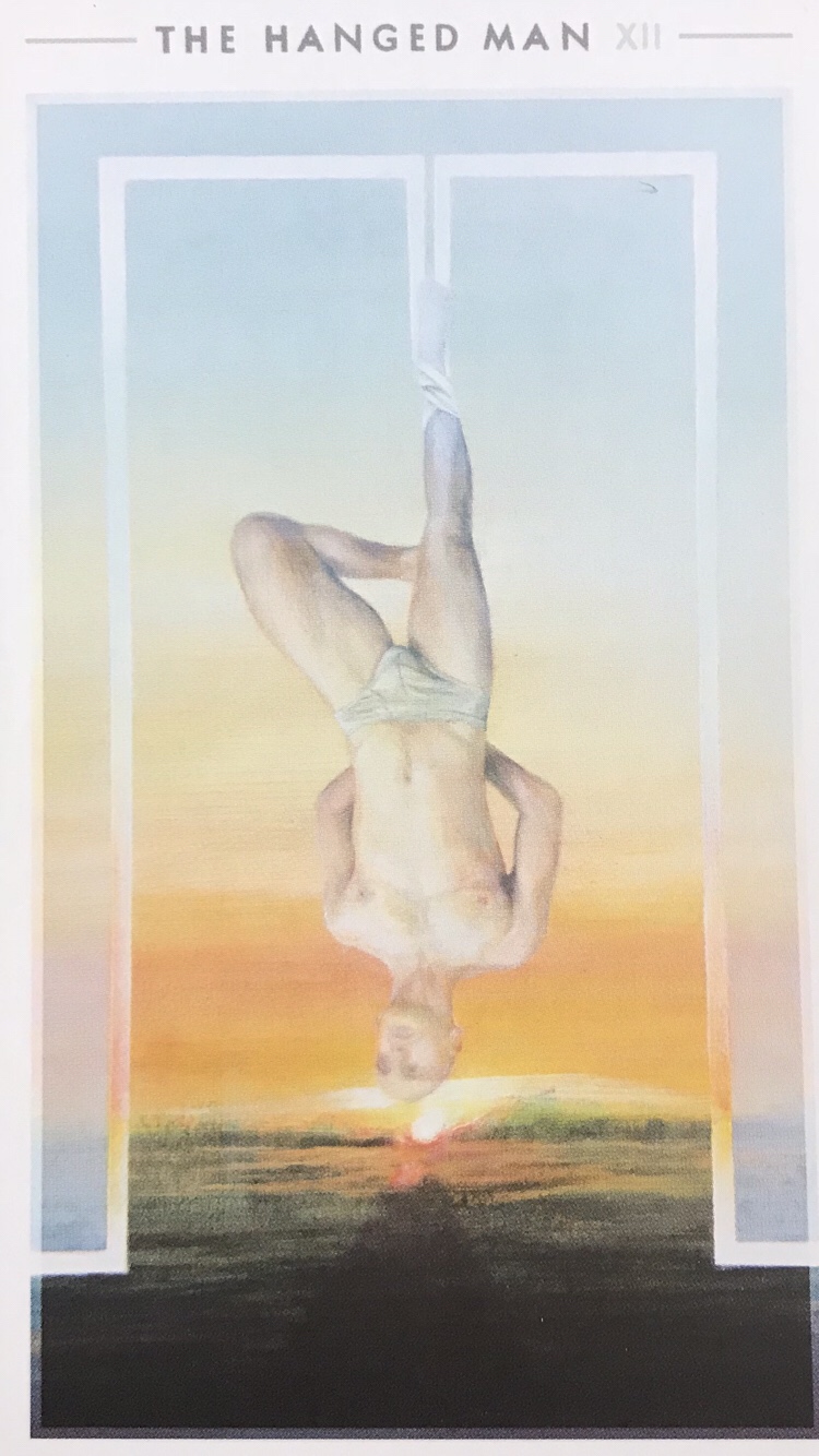 I did a five card spread before my daily draw today. The hanged man appeared in it as well. As I sat in meditation with this brilliant image in front of me– I saw myself much like the hanged man, my roots extending down into the center of the earth, spreading wide, and my crown lifting out into the cosmos into the vast expanse of what is beyond. Linking into the infinite I felt immediately the sense of being held from all directions. I felt fear present in my third chakra. I expanded out from my center and allowed it to disperse into the support that held me. My awareness then moved to a deep aching in my heart. In connecting to it I had flashes of my brilliant daughter as a little girl. I felt the human aching of my guilt at not being perfect and not always being present with her. I allowed myself to feel and release the immense guilt I feel as a mother for not being EVERYTHING, all the time. I continued to allow the energy of the universe to hold me.
