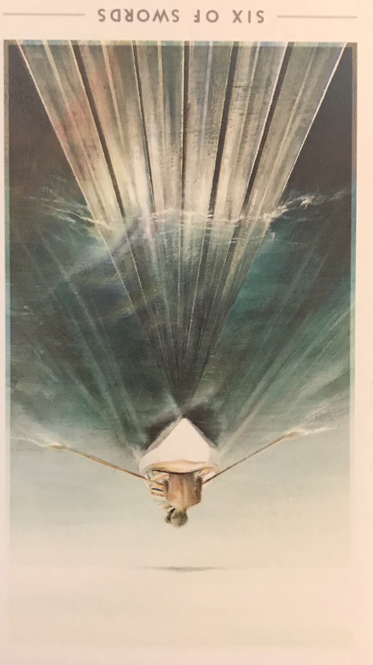 This card fortells of a journey– setting out to shores unknown, a new beginning. This is precisely where I find myself, letting go of the comforting and familiar to set forth into a new paradigm. Drawing it in reverse clearly illustrates my trepidation about this journey.