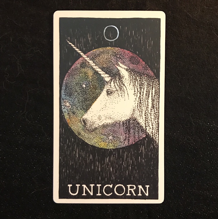 This is another brilliant new deck that just arrived at my door yesterday– the Unicorn is my first pull from it. Each day for me at the moment is a practice in trust and allowance. Though there was no specific question I asked as I shuffled the deck and drew this brilliant creature from it– what tends to be at the forefront of my mind these days is my new path forward. I am acknowledging a shift in consciousness, an enlivening and awakening of my truest self. I am doing the best I can to get out of my own way and open myself up to a larger context. I am asking the thoughts and inner-narrative that drive my worries and fears to take a back seat so that a larger perspective can be gleaned.